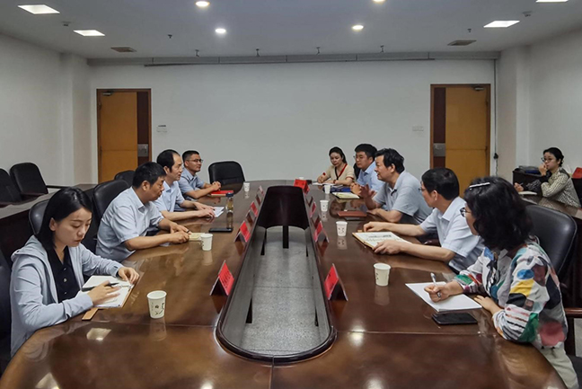 在市生態(tài)環(huán)境局,局總工程師鄭田雄熱情接待了王清良一行,并就我市生態(tài)文明建設(shè)、生態(tài)環(huán)境保護等工作進行介紹,深入了解中色環(huán)境公司在環(huán)境治理、土地改良與綜合利用等方面取得的成效。他表示,中色環(huán)境公司發(fā)展前景廣闊,希望將來在化工園區(qū)水土污染修復、環(huán)境監(jiān)測等領(lǐng)域發(fā)揮專業(yè)優(yōu)勢、提高治理效能。