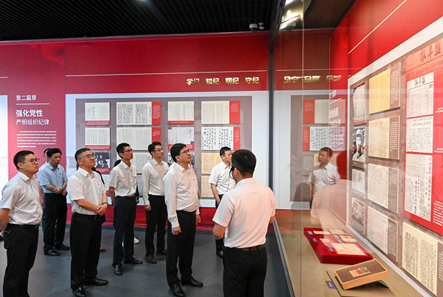 展覽透過一個(gè)個(gè)生動(dòng)的案例,圍繞“擎旗抗戰(zhàn) 嚴(yán)明政治紀(jì)律”“強(qiáng)化黨性 嚴(yán)明組織紀(jì)律”“激濁揚(yáng)清 嚴(yán)明廉潔紀(jì)律”“心系人民 嚴(yán)明群眾紀(jì)律”“建章立制 嚴(yán)明工作紀(jì)律”“立德立言 嚴(yán)明生活紀(jì)律”“所向披靡 奪取抗戰(zhàn)勝利”等七個(gè)篇章,生動(dòng)展現(xiàn)了新四軍堅(jiān)定崇高的信仰、守紀(jì)如鐵的作風(fēng)、嚴(yán)于律己的風(fēng)范、懲治腐敗的決心、親民愛民的情懷和艱苦奮斗的精神。集團(tuán)領(lǐng)導(dǎo)班子認(rèn)真聽取講解介紹,用心學(xué)習(xí)體悟,表示將嚴(yán)格對(duì)照“六項(xiàng)紀(jì)律”,在學(xué)紀(jì)知紀(jì)明紀(jì)守紀(jì)上下功夫,在以學(xué)促干上持續(xù)用勁,把深化黨紀(jì)學(xué)習(xí)教育同貫徹落實(shí)省市委全會(huì)部署要求、抓好當(dāng)前各項(xiàng)工作結(jié)合起來,以實(shí)干實(shí)績(jī)實(shí)效為鹽城高質(zhì)量發(fā)展大局多作貢獻(xiàn)。