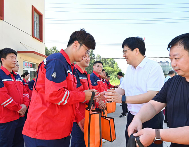 在城燃公司倉頭場站,張林海慰問了高溫作業(yè)的一線職工,對他們不畏高溫、堅(jiān)守崗位的精神給予充分肯定,并詳細(xì)了解近期工作開展情況,為職工送上防暑降溫物資,叮囑他們加強(qiáng)自我防護(hù),注意勞逸結(jié)合,時(shí)刻繃緊“安全弦”,做好日常巡檢維護(hù),保障群眾安全穩(wěn)定用氣。