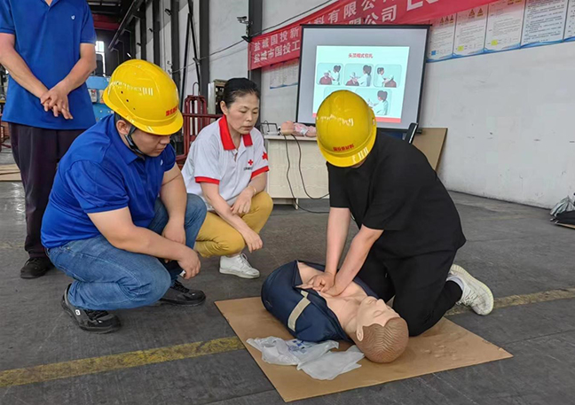 演練前,國投新材料公司“安全生產(chǎn)月”活動(dòng)領(lǐng)導(dǎo)小組召開專題會(huì)議部署演練事宜,要求責(zé)任部門認(rèn)真落實(shí)任務(wù),精心設(shè)計(jì)演練方案,細(xì)化腳本、有序組織、確保質(zhì)量。演練邀請(qǐng)了市紅十字會(huì)講師到場(chǎng)指導(dǎo),圍繞工業(yè)生產(chǎn)中最容易發(fā)生的“觸電”和“機(jī)械傷害”事故展開,分別進(jìn)行了應(yīng)急救護(hù)知識(shí)培訓(xùn)、事故現(xiàn)場(chǎng)處置和救護(hù)技能實(shí)操練習(xí)。現(xiàn)場(chǎng)人員密切配合,演練步驟環(huán)環(huán)相扣,達(dá)到了預(yù)期效果。