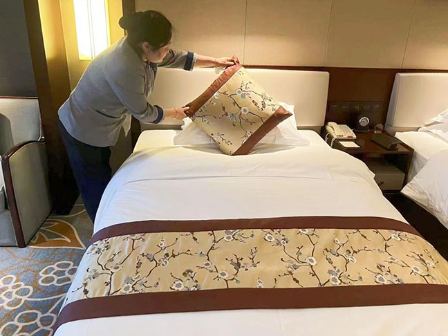 鹽城迎賓館深入挖掘市場潛力,提前擬定接待服務(wù)方案,強(qiáng)化安全防范措施落實(shí)。酒店領(lǐng)導(dǎo)班子深入開展安全管理及衛(wèi)生服務(wù)大檢查工作,要求各部門、各崗點(diǎn)加強(qiáng)值班值守,并針對假期婚喜宴多的特點(diǎn),安排安保人員全程跟蹤宴會(huì)廳桁架、T臺(tái)搭建,確保布景扎實(shí)穩(wěn)固。酒店為跨年賓客提供房間個(gè)性化布置,并反復(fù)打磨接待流程和服務(wù)細(xì)節(jié),對食材的采購、儲(chǔ)存、加工等環(huán)節(jié)進(jìn)行嚴(yán)格把關(guān),優(yōu)化了菜單菜系,以地道的“鹽城味”、家鄉(xiāng)味滿足消費(fèi)者的美食體驗(yàn)。國投大酒店以“生肖龍、中國結(jié)、福字”等傳統(tǒng)元素精心布置整體環(huán)境,營造歡樂喜慶的節(jié)日氛圍,用熱情周到、體貼入微的服務(wù),為賓客打造舒適愉悅的食宿體驗(yàn)。酒店廚師團(tuán)隊(duì)從“地方特色”切入,用心鉆研、反復(fù)推敲,推出“家的味道”主題跨年套餐活動(dòng),以美食為媒介,傳遞愛與團(tuán)圓。店內(nèi)同步推出三款極具鹽城特色的年貨大禮包,搭配豐富、匠心獨(dú)運(yùn),滿足賓客多樣化消費(fèi)需求。鹽城萬豪酒店精心布置公共區(qū)域環(huán)境,大力營造節(jié)日氛圍,積極創(chuàng)新產(chǎn)品、提升服務(wù)品質(zhì),推出了“新歲閃購”活動(dòng),“鹽城廚房西餐廳、萬豪中餐廳、霧山特色餐廳、大堂吧”的各類套餐吸引眾多食客到店品嘗,工作人員專業(yè)的素養(yǎng)和細(xì)心的服務(wù)贏得賓客一致好評(píng)。