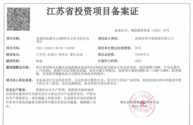 國(guó)能公司持續(xù)優(yōu)化市場(chǎng)布局,聚焦業(yè)務(wù)拓展,積極整合資源,緊盯優(yōu)質(zhì)項(xiàng)目,利用濱海縣八灘鎮(zhèn)330畝坑塘水面建設(shè)漁光互補(bǔ)光伏電站,規(guī)劃裝機(jī)容量18MWp;與灌東鹽場(chǎng)公司合作,利用響水灌東鹽場(chǎng)約2000畝坑塘水面,開(kāi)發(fā)建設(shè)120MW漁光互補(bǔ)光伏電站。目前2個(gè)項(xiàng)目已取得投資備案證,進(jìn)入省發(fā)改委光伏發(fā)電項(xiàng)目實(shí)施庫(kù),正在積極推進(jìn)項(xiàng)目前期各項(xiàng)工作,預(yù)計(jì)今年年底開(kāi)工建設(shè)。