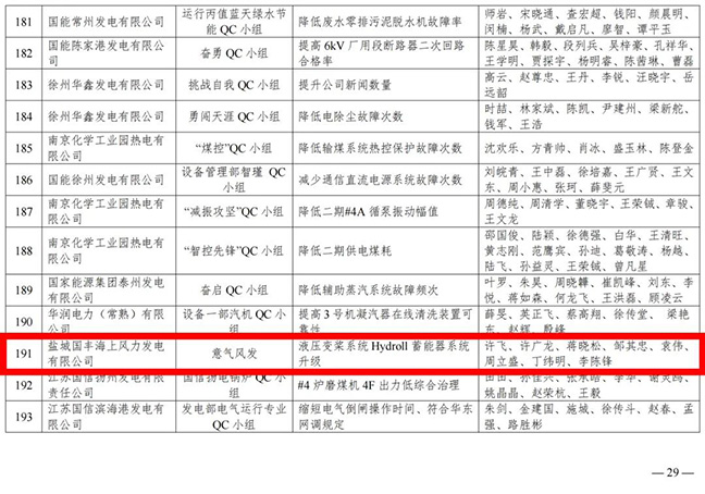 近日,鹽城國(guó)豐公司質(zhì)量管理小組的“降低6.45Mw機(jī)組變槳液壓油泄漏次數(shù)”與“液壓變?nèi)鞠到y(tǒng)Hydroll蓄能器系統(tǒng)升級(jí)”兩個(gè)課題,分別榮獲2025年度江蘇省電力行業(yè)QC小組發(fā)布一等成果與二等成果。