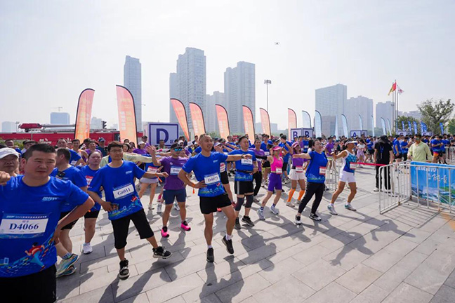 早上8點,鹽城國貿中心(先鋒中心)廣場已人聲鼎沸。參賽選手們陸續(xù)從四面八方齊聚于此,大家身著統一藍色賽事T恤,跟隨暖場音樂進行熱身,現場化成歡樂的藍色海洋。“報名參加垂直登高賽后我一直在家里練習爬樓梯,雖然是第一次參加城市級垂直登高賽,但運動都是相通的,我一定能取得好名次。”喜歡跑馬拉松的成先生信心十足。