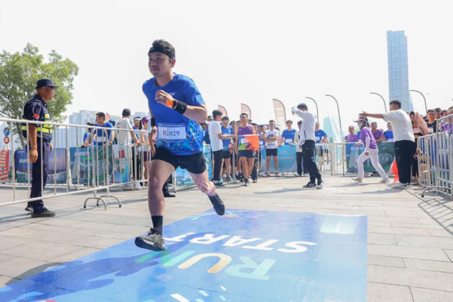 除本地跑者外,本次賽事還吸引了很多外地高手參加。“我參加爬樓登高賽100余場。”來自湖南的選手薛劍東今年34歲,在全國20多個省參加過爬樓比賽,均獲得前三名,還在世界巡回賽中獲得國際第三名;選手何亮亮多次參加上海東方明珠登高賽,奪得過4次冠軍;女選手樂青華不僅獲得多個冠軍,還是2023上海環(huán)球金融垂直登高、2024澳門登高、2024杭州來福士垂直登高的記錄保持者。
