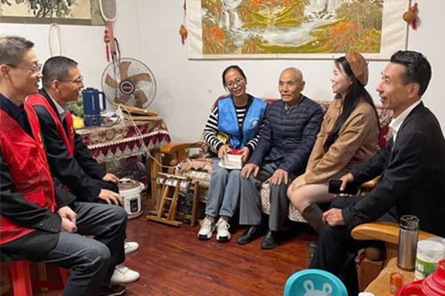 活動中,黨員志愿者們來到桂苑社區(qū)華佳梅苑小區(qū),同社區(qū)工作人員一起為老黨員們送去精心準備的食品和書籍,并與他們拉家常,傾聽他們的心聲,關切詢問他們的日常起居、身體健康情況,并叮囑老人們在換季時節(jié)注意天氣變化,及時增添衣物,保重身體、安度晚年。一聲問候,幾句細語,洋溢著濃濃的情意,讓老黨員們深切感受到黨組織的關懷與溫暖。